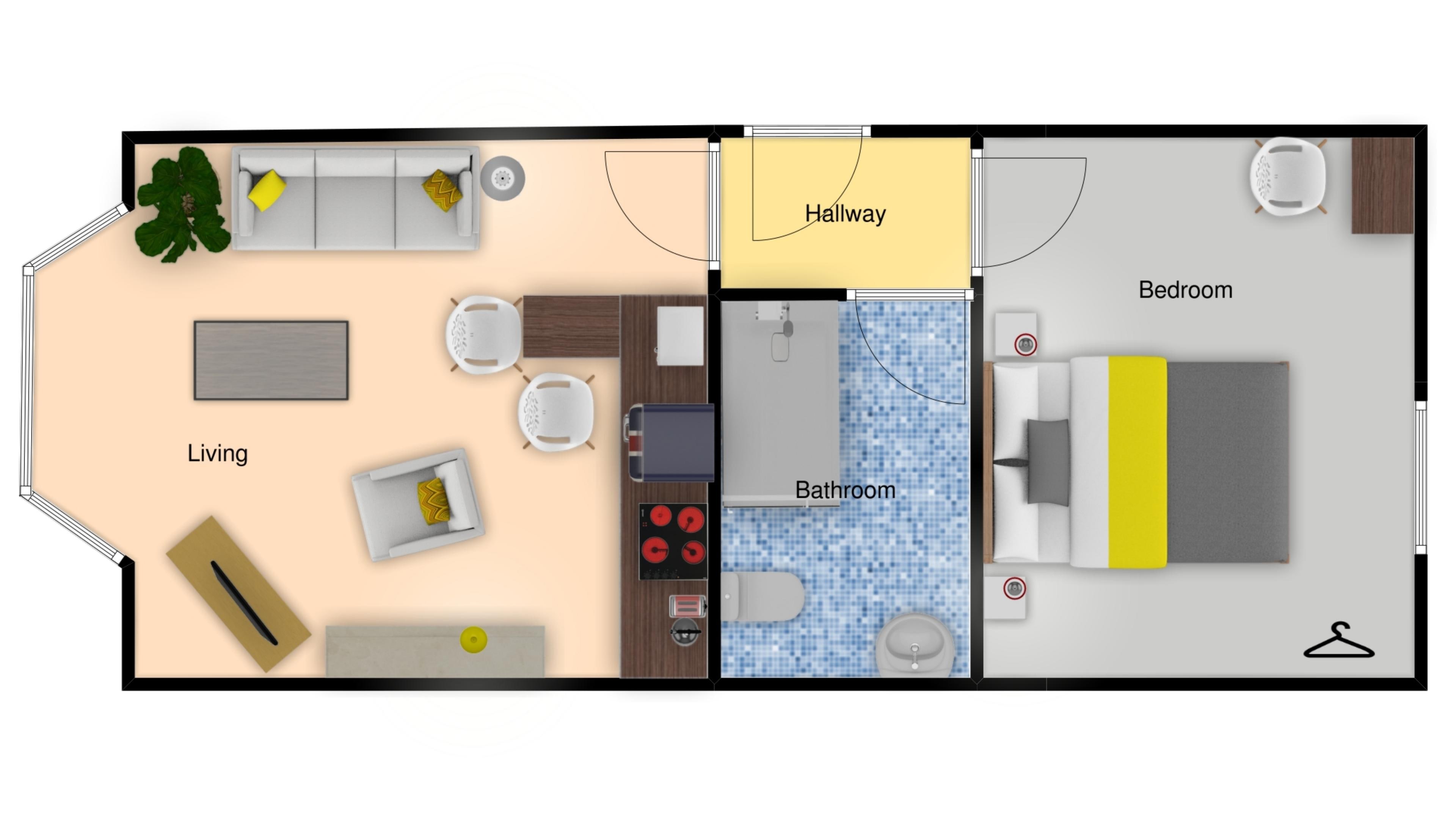 This is a contemporary one bedroom apartment which offers a modern lounge, kitchen, shower and double bedroom.